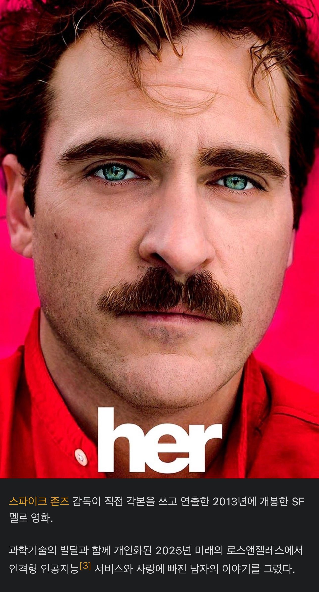 스파이크 존즈의 her을 처음 봤을 때만 해도 저런 세상만 와도 너무 행복하겠다. 언제쯤 가능해질까 생각을 했었는데, 그 배경이 2025년이었음을 알게 된 지금은 너무나 당연히 가능해질 같다는 생각이 든다. 아직까지 LLM이 특정 도메인을 제외하면 덜 지배적이라 생각이 드는데, 앞으로의 5년은 정말 많은 변화가 생겨나겠지. 참 기쁠 것만 같았는데, 언젠가부터 정말 무서운 세상이 될 거 같다는 생각이 든다.