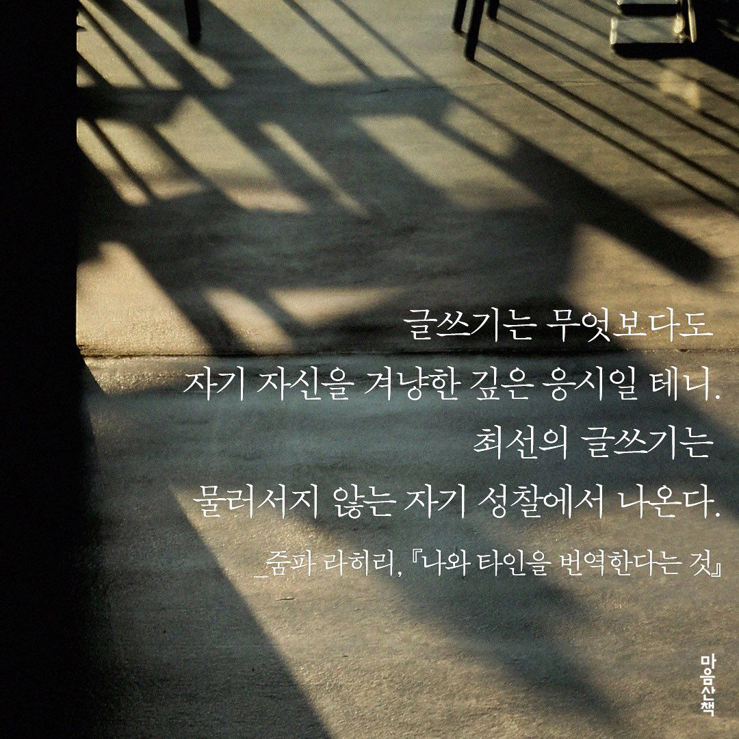 어떤 한 장을 넘길 때엔 깊은 울림에 생각을 멈출 수 없었고, 또 다른 어떤 한 장을 넘길 때엔 눈시울이 붉어져 눈물을 흘릴 뻔 하고 또 다른 한 장을 넘기면서는 담백하면서도 아름다운 글에 탄복할 수 밖에 없었다. 예술이란 참 풍부함을 높이고 해상도를 높여 감정의 폭을 다채롭게 받아들이고 또 이해하는 것이라 생각했다. 생각이 언어가 되고 그것이 글자를 매개로 하여 전달 되는 것들, 감각적인 것들의 전달, 글의 아름답고 또 견고한 표현이 내게 울림을 주는 것이 참으로 좋았다.